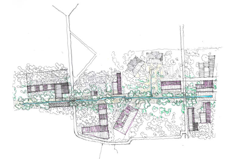 Acil girişi ile başlayıp, psikoterapi merkezinin revağı altından geçen ve ahşap köşkün işlevlendirilen sokak kotuyla yüzyüze gelen günlük kaldırım dolaşımı, ardında kreşi barındıran görece alçak çeperle son bulur. Hâlihazırda kreşin bulunduğu yer doğru bulunmuş ve yeni programın kreş ihtiyacı da caddeden bağımsız giriş alabilecek şekilde çözülmüştür.