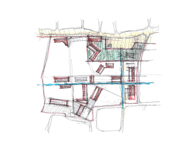 Orta bahçeye dönük çalışacağı öngörülen Kızılay pavyonunda iç düzenleme ile asli girişi bu cepheye alınmış, programın ve dolaşımın yönü permakültür bahçeleri, açık amfi ve diğer peyzaj düzenlemelerine açılmış, buradan su yoluna vardırılmıştır. Diğer tarihi bina ise Poliklinik programının bazı başlıklarını içerdiğinden asli girişi korunmuştur.