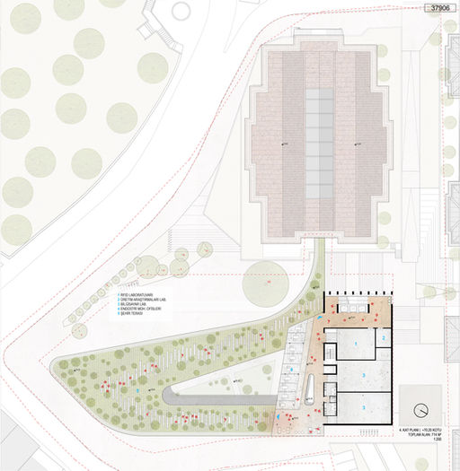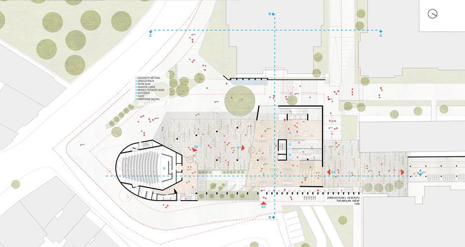 Seba caddesi boyunca apartman dizisinin gabarisinde kalan yapı, +70.20 kotunda kente yeşil bir teras açar. Yeni bina ve tarihi Karakol binasının toplam kütlesinin merkezinde üç yönden kente bakan 1200 m²’ye yakın büyüklükte bir peyzaj alanı, üniversitenin en yoğun +63.36 kotunun üzerini örter.