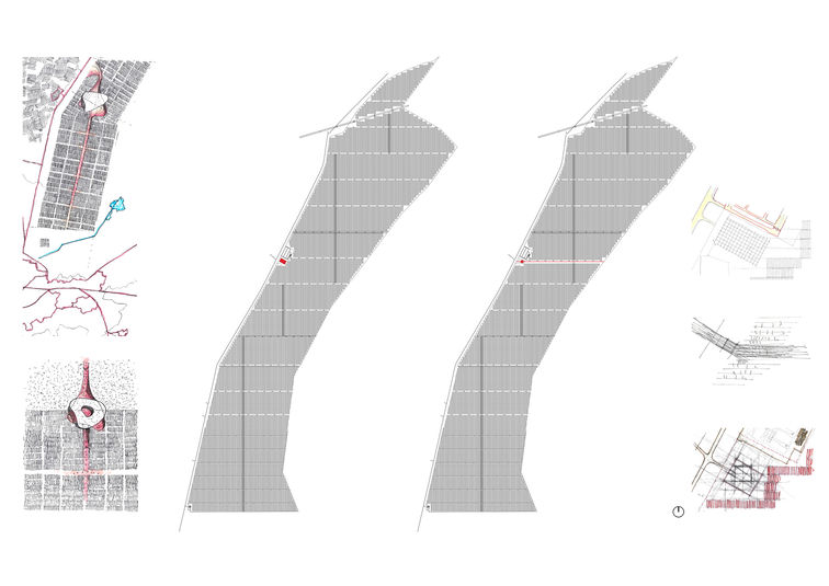 Yapının yerleşeceği parsel sınırları, programın nitelik ve niceliği ile yakın çevre karakteristiğinin açıklığa kavuştuğu taslak vaziyet planının paylaşılmasının ardından, kampüs kapsamında düşündüğümüz “hesap dışı” dönüştürücü aksın imkanlarını araştırmaya giriştik. Başlangıçta kuzey-güney aksında düşlediğimiz, parseli uzun yönde kat eden doğruyu; bina içi/dışı ziyaretçi dolaşım ölçeği, panel dizilimindeki matematikle örtüşme kabiliyeti, Karacadağ’ı perspektifine alma, Güneş’in doğuş ve batış doğrultusuyla çakıştırma gibi duyarlıkların etkisiyle, parseli kısa yönde kat eden doğrultuya çevirdik.